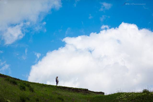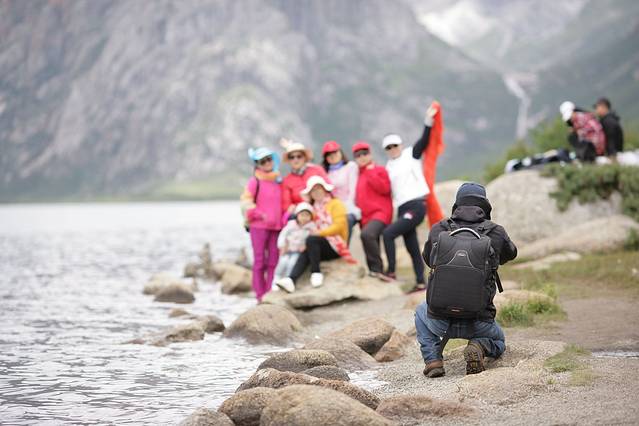 因为有个爱摄影的洋哥,为了找一个好一点的前景,所以一个人扛着装备,快步向前;