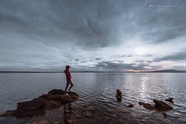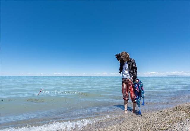 在 青海湖 ,我算是见识这独特的天气。头顶大太阳,右边是碧海蓝天,左边却是乌云密布。一会儿雷鸣闪电,一会暴雨冰雹,再一会儿就是蓝天白云。所以,日落时分,我们正欣赏着美景时忽然狂风暴雨,我们抱着相机赶紧撤离。但是因为我紧急撤离之前拿手机拍了一张小清新的照片,洋哥就一直心心念说,一定要重新拍。所以我们躲了大概20分钟的雨后,天果然放晴了。天边还有奇光以及火烧云。------简直就是摄影天堂。