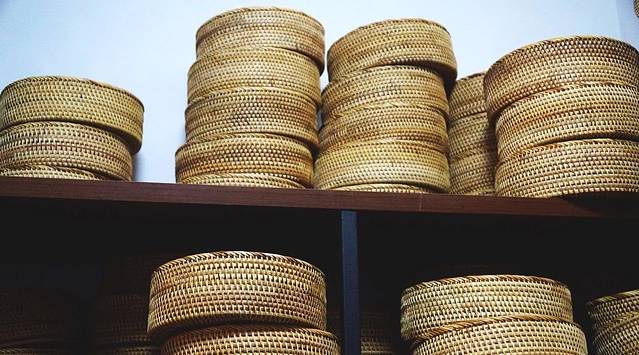 但是,竹编是最能代表中式生活的东西:喝茶,需要茶席,用酱,需要调羹,纳凉,需要藤椅,风干食物,需要簸箕,曾经买菜,需要提篮子。