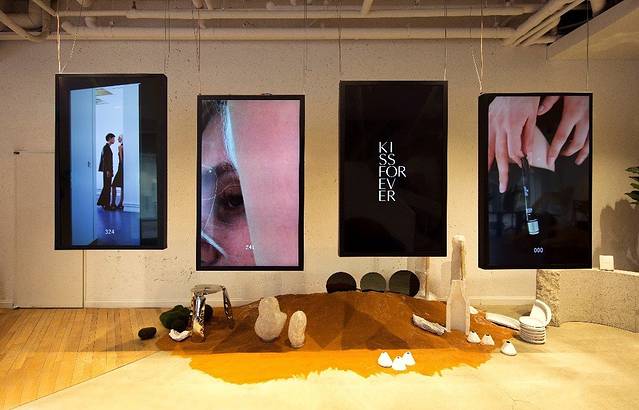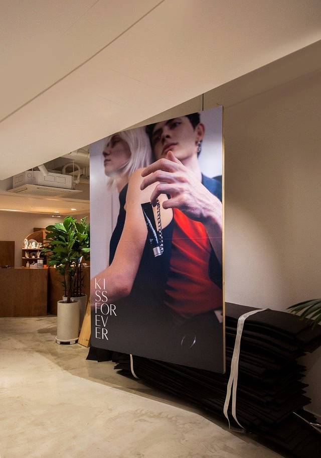 在二楼一上来的地方就可以看到这个艺术墙了,这也是很多ins打卡的照相墙。仔细观察的话,这里每天都会更换一张与这次新上市的kissforever香水有关的各种形象照片, 例如kissforever香水的各种创意设计图纸,还有模特摆拍照片。在这里感受了到了设计的独特魅力哈~原来化妆品也可以这么精致,这么充满艺术感。二楼空间也非常大,主要也是以一个舒适的空间为主的设计概念,可以随意坐在沙发上休息,或者游走于个别的房间拍照,听着悠长的电台歌声,享受这样一个欣赏化妆品的闲暇舒适的时间和空间.