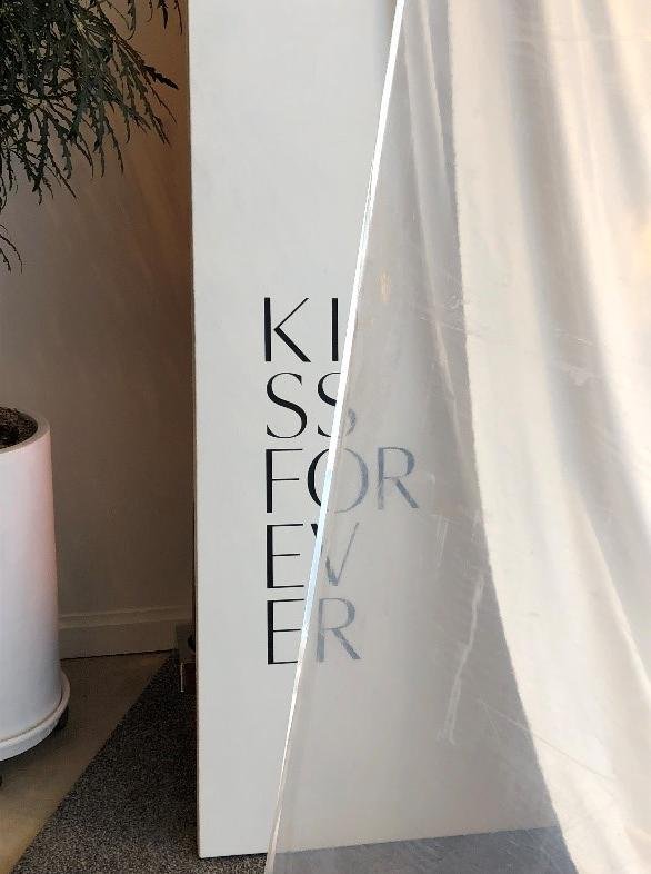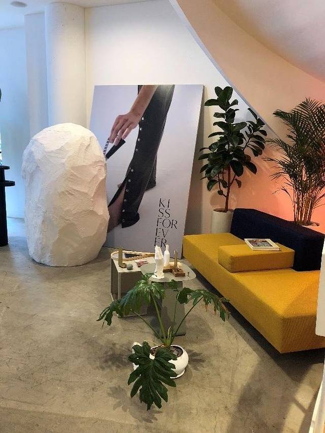 现在要去第二层空间了,哈哈哈,其实说实话这家店产品总共才6种,却有这么大的开放空间,真的被这个面积吓到了。上楼的一瞬间就被这个杂志墙给吸引了,在这个墙纸上,我看到了这个kissforever香膏的进化过程,还有各种创意的设计照片,感觉我自己都能从这里找到无限灵感。