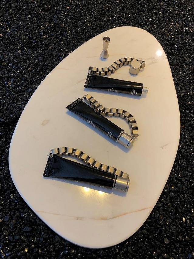 刚刚进去的时候,你就会被这个神圣的日光所吸引住,在这样的日光下面体验tambutins的护肤产品,会有一种别样的感觉。它家的化妆品主要是水、精华还有再生面霜和特别神奇的链条香水,味道都是清一色的檀香柑橘味道!店铺内陈列着各种设计师的作品, 这样的陈列设计能够突出kissforever的特点和氛围,所以你会看到半遮面的雕像、女生温柔卧躺像以及其他一些艺术性强的设计作品。其中每一个作品上面都留有不同的香味,有新上市的kissforever324,000和241的香味,还有一些其他未上市香水的味道,神秘而优美~旁边会错漏摆设一些产品及试用品,都会由工作人员一个个来为你试香,有种私人订制的购物体验感。