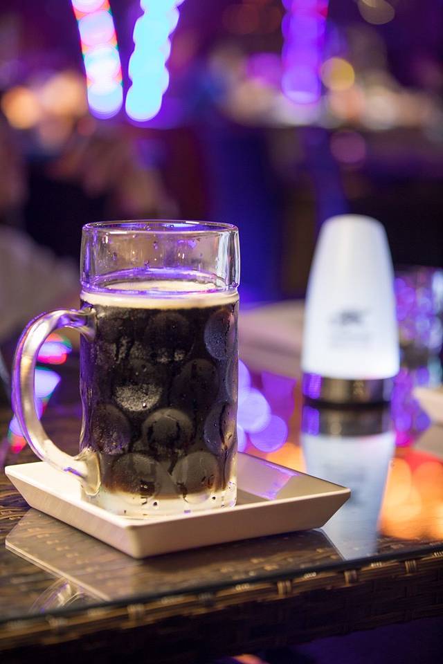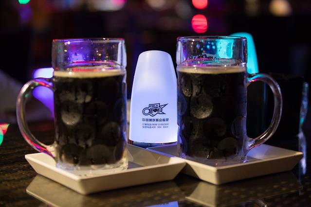 由于我们来的时候已经饱餐了一顿了,所以就直接点了两杯黑扎啤和一杯果汁。酒杯下的夜色格外迷人。