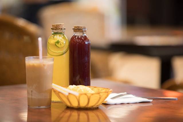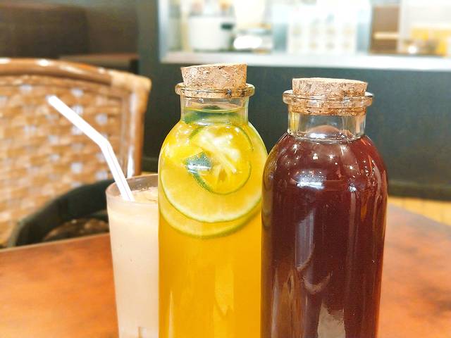 奶茶丝滑,但没有太多惊艳之处。金橘柠檬茶和乌梅茶都用瓶子装着,塞上木塞,视觉上倒是挺有美感的~~~