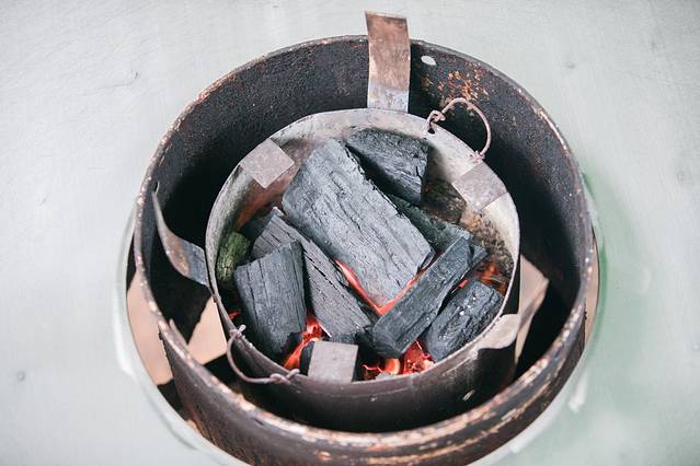 使用上好的炭火煮的,红红的碳火上架起一口老锅。