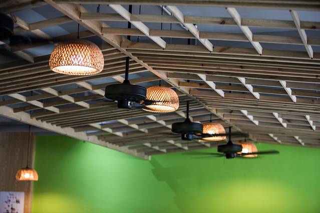 我们一点到的,其实已经过了饭点,但生意依旧不错。小店内装修简约 大方 ,墙上的椰叶装饰,屋顶的椰子灯,让整个店富有 海南 特色。