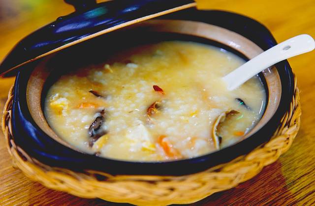厨师在不紧不慢地用勺子搅拌粥,粥的香气直钻鼻子,剩下的只有咽着口水的焦虑等待的份了。