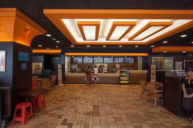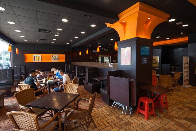 店面很大,能容纳上百人就餐,整体装修色调为橙色,整体感觉蛮温馨的。
