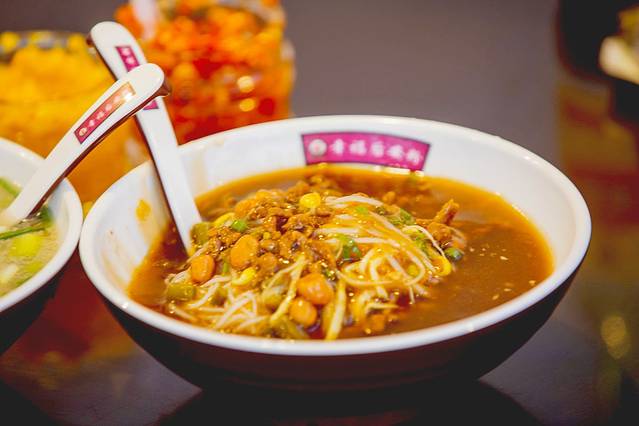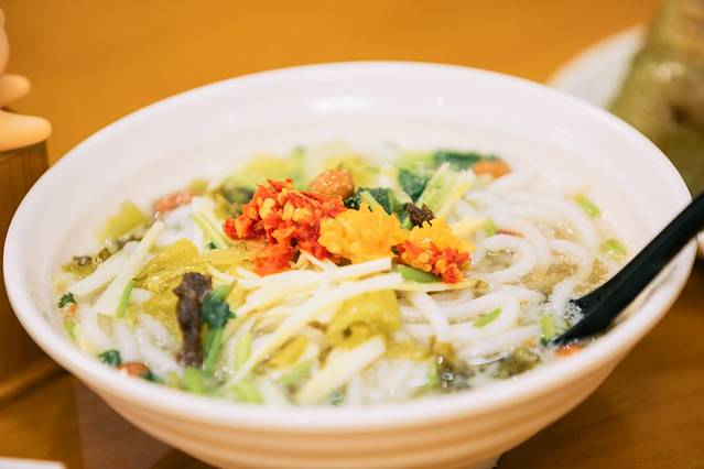 汤的抱罗粉用料大抵相同,只不过不用拌油或腌料,而是加入精心熬制的骨汤。粉条白皙细滑,多吃不腻,喝上一口汤,汤味鲜美。