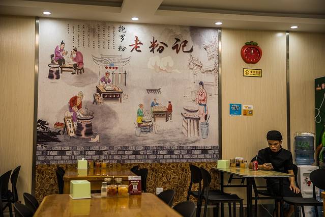 这是一家在 三亚 人气很旺的简餐粉店。一般敢称为“老”的店,都会有些年头,墙上也很应景的贴有老粉记和抱罗粉的壁画。