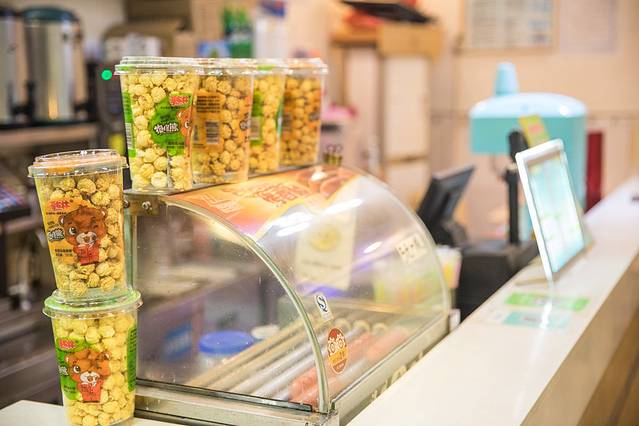 除了点餐台,在旁边的还有个小橱窗,靠近一看,上有各种甜品,价格倒也不算贵。