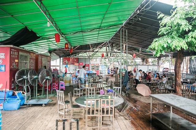 位置比较偏,招牌基本上属于放在你面前你都不一定能看得到,但是慕名而来的人很多,在旺季时客流量比较大,所以导航到附近后问问路人,基本无人不知无人不晓。等穿过胡同,看到一个略显简陋但宽敞的大排档就到了。