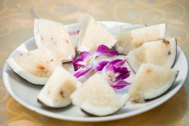 椰子饭选用优质糯米和天然的椰肉、椰汁一起蒸熟制作而成,咬上一口软糯清甜,别有一番滋味。新鲜烹制的椰子饭多数在餐厅中作为一主食供应,如在第一市场边的海鲜加工店里都可以代为购买椰子饭。