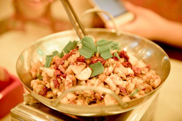 【干锅牛蛙】他家的干货系列也不错,点了一份干锅牛蛙,辣椒一如既往的辣,牛蛙的肉给得也多,满满一锅~吃得都有些冒汗——或许这正是 湖南 菜得特色。