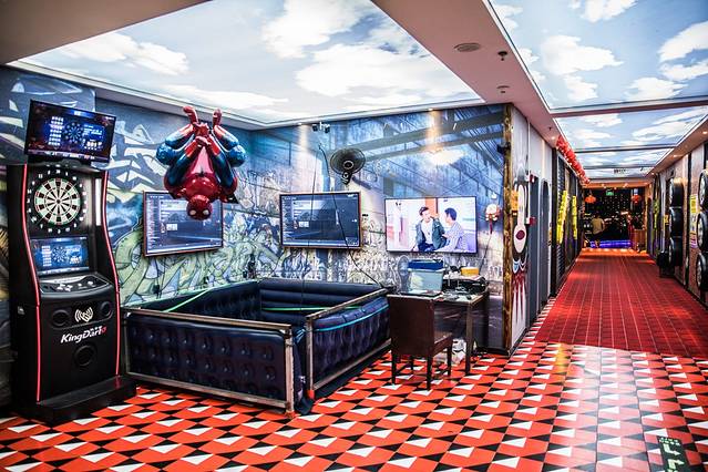 其室内的娱乐一角还有各种娱乐的小项目,可以玩飞镖,可以看小电影。