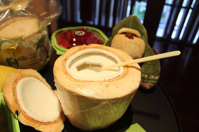 椰子更是随处可见,或青色或黄金色的椰子摘下后,用刀砍出一道口子,清甜的椰汁就流了出来。各种椰子制品,椰子糖、椰子糕深受游客喜爱。