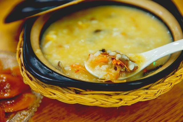 由于进店时是下午3点多,服务员和老板正在休息,看到我们进店还是非常热情地迎了上来并向我们介绍他们的招牌菜——膏蟹粥和腊肉煲仔饭,于是我们就各点了一份。