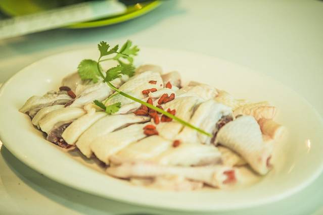 鸡肉是这一餐的主角,处理得干干净净的 文昌 鸡,上有几粒枸杞做点缀。