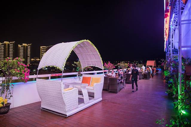 不得不说的是在啤咔的就能看到 三亚 河游艇港的全貌,晚风吹来,听着轻音乐,喝着小酒,看着美如画的港口景色,十分惬意。