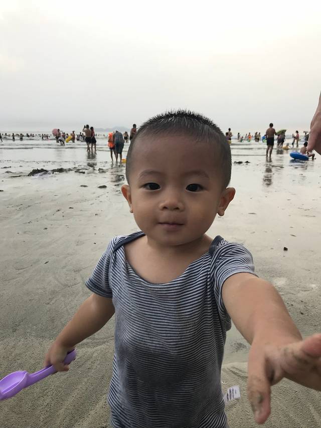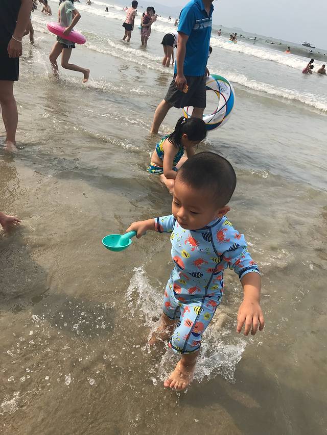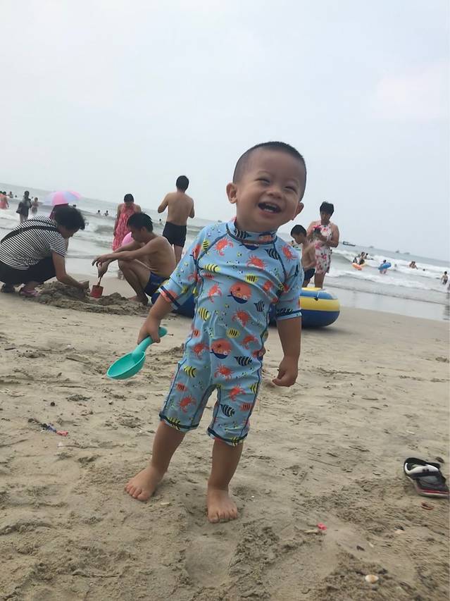 妈妈!都说我泳衣好看!终于可以玩沙子了