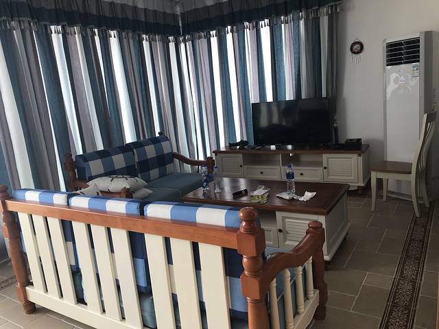 房间是地中海风格!400多两房一厅!还可以自己煮食!带宝宝很方便