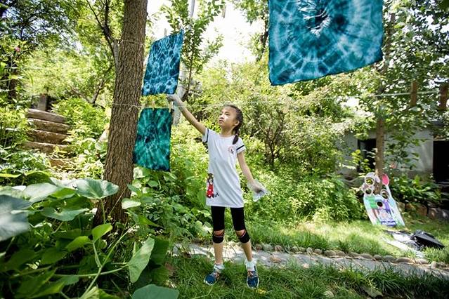 第二天一早,叫醒我们的是乡间清脆的鸟鸣和清澈的空气,我们起床洗漱,吃了难得的原汁原味的农家早餐,然后大家都集合到3号院,去做扎染。
