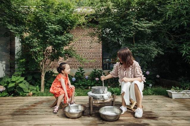 下午正式活动前,几组家庭相聚在一起,进行了一个简单的自我介绍,每组家庭都非常有趣,唯一的男孩大成,是几个孩子里年纪最小的,还带着小小的羞涩。还有一对闺蜜,乐乐和甜甜,在庭院里,我们大人们谈论着关于小孩的成长,孩子们的友谊在嬉戏打闹之间瞬间升温,整个院子里充满了孩子们的笑声。