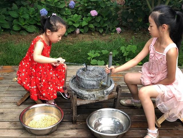 在往日繁忙的工作里,都是快餐店的咖啡和豆浆,却从未体验过手工磨制的豆浆,第三天一大早我们早早起来,去院子里磨豆浆。