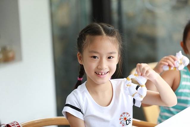 管家大姐给大家讲解了关于扎染的由来和小知识,并教大家如何去做一块属于自己独一无二的图案,孩子们都兴奋极了,拿着小小的皮筋将布一桶扭、捆、绑,做成了他们想做的样子,完成之后在老师的指导下,小心翼翼的放进染缸。