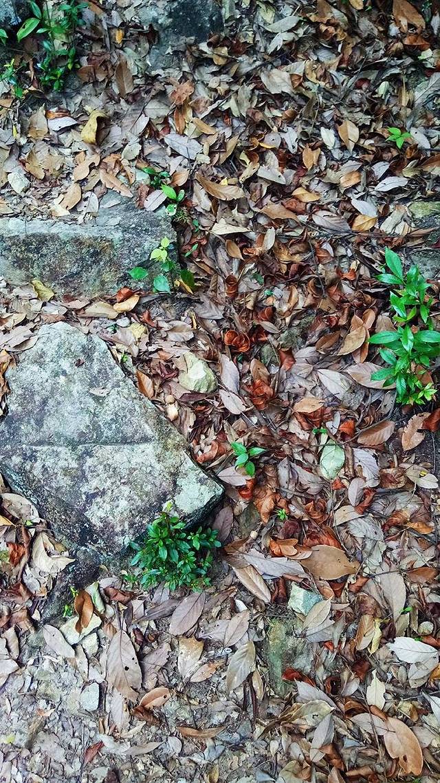 像我们这样一路观赏,一路赞叹的游客并不在少数,可惜我并不是喜欢热闹的人,于是拉着闺蜜又穿过一条幽静的小路,小路两旁的树木在头顶上方聚集,均由自然的鬼斧神工形成一道拱形的树枝长廊,脚下踩着湿润的树叶,仿佛走在古老而又神秘的香榭丽舍大街上,超过旁边的树木枝丫,还能看到底下碧绿的潭水,这潭水绿得像翡翠一样,引得我俩十分好奇(回程的时候又经过一方绿色的潭水,我走上前去一探究竟,发现水是清的,那漂亮的绿色其实是树的影子,现在想起来还是觉得很浪漫。)