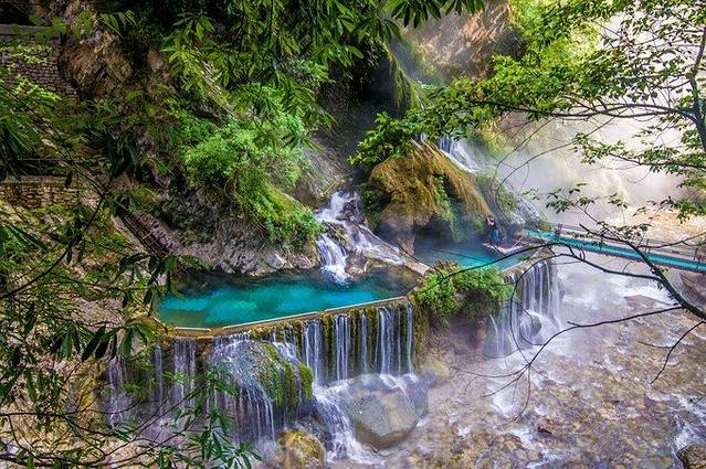 作为四川人,若你没泡过这里的温泉,那还真是有点落后了。螺髻九十九里温泉距离西昌一个多小时的车程,这里被誉为是世界上最大的温泉,同年又被评为是世界第一的温泉。对于这个温泉的盛誉有很多,也是当地人人皆知的一处景点了。在山间环绕的雾气就像是仙境一般,回家给朋友看他还不相信这是真实的照片,哈哈,是我拍照技术太好,还是这意境太美呢?对于这里总有种似曾相识的感觉,后来仔细想想,还真有点像九寨沟的瀑布。