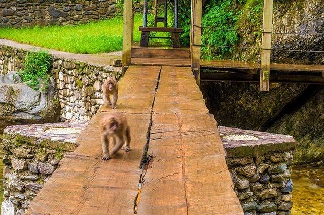 一大早赶来就是想泡一个早温泉,刚进来就碰到几只拦路猴,幸好这里的猴子不是特别凶猛。若你手里拿着食物的话,它定会扑上来,这是猴子的天性。