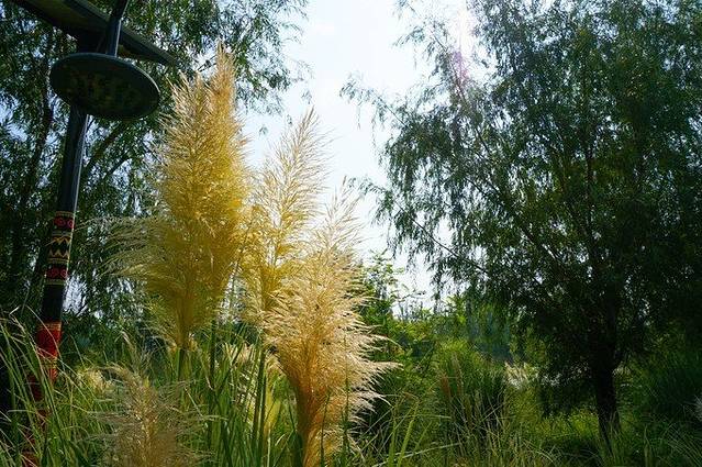 这里的景色非常美,到处都能看见芦苇,蓝天和绿叶相互映衬,这样的天气也实在很让人舒适、放松。