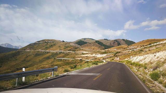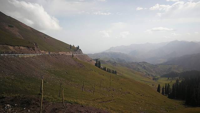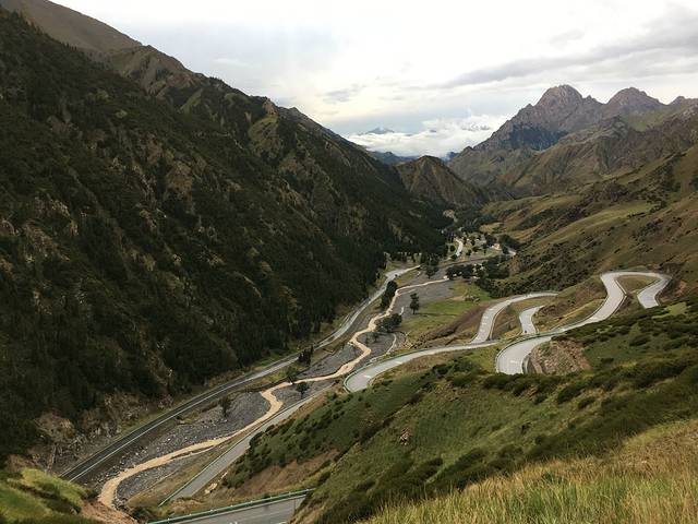 过了铁力买提达坂隧道以后,就不下雪了,海拔也随着蜿蜒的山路逐渐下降,周围的景色又变成了另一个样子