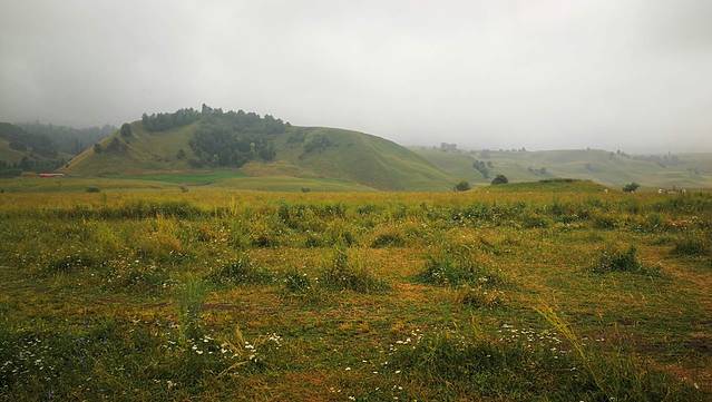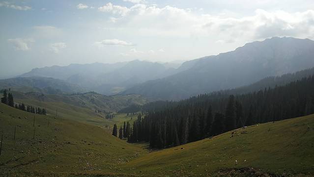 到那拉提的这一天阴天,而且下着小雨,所以景色看起来大打折扣,别人拍到了草原是这样子的