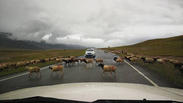 到达尼勒克县的时候又是黑天了,刚进县城就被交警把车拦下,收了驾驶证和行驶证,检查大灯灯光,发现右侧雾灯不亮,交警让现场把灯修好,否则交罚款。跟他商量好半天,还是不行。大黑天的上哪买灯泡去?硬着头皮去修,才发现有根线跑土路时颠掉了,插上灯立即亮了,这才放我们走,又省了罚款钱,晚上得吃点好的犒劳自己……