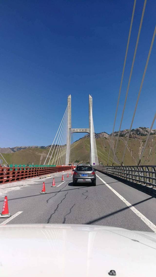 百里画廊到尼勒克县有一段土路,这段路充分发挥了4700陆地巡洋舰的本色,坑坑洼洼的路上还能跑到飞起,腰间盘快颠碎了……几次躲坑的时候车轮距崖边只有20公分,车上的人吓得都不敢吱声……