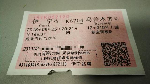 这个路线规划还没开始实施就夭折了,作为本次自驾游团队队长的我,临时决定变更计划,直接去伊宁,所以在火车上就买了去伊宁的票