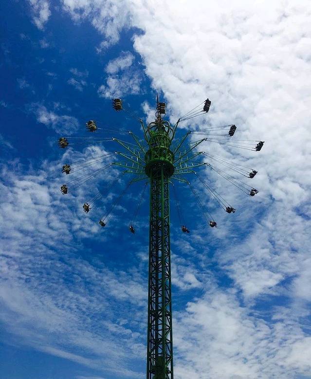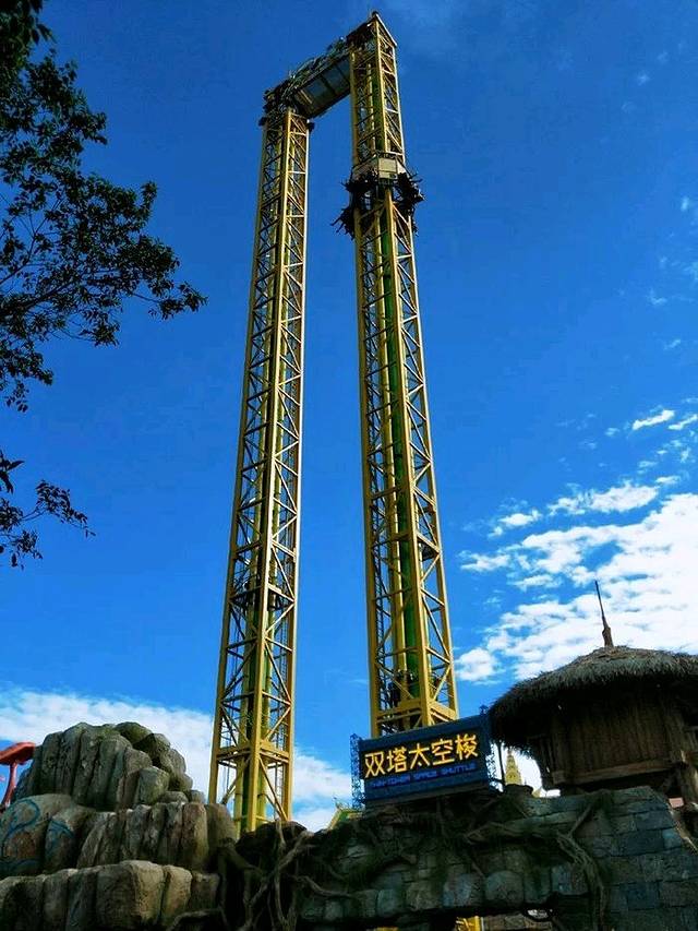 名为双塔,实际上是跳楼机。人越大,胆越小。两个塔的刺激程度不一样,可惜当天只开放了不强的那边,两个小姐姐玩下来都觉得遗憾