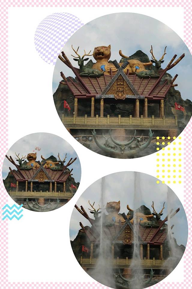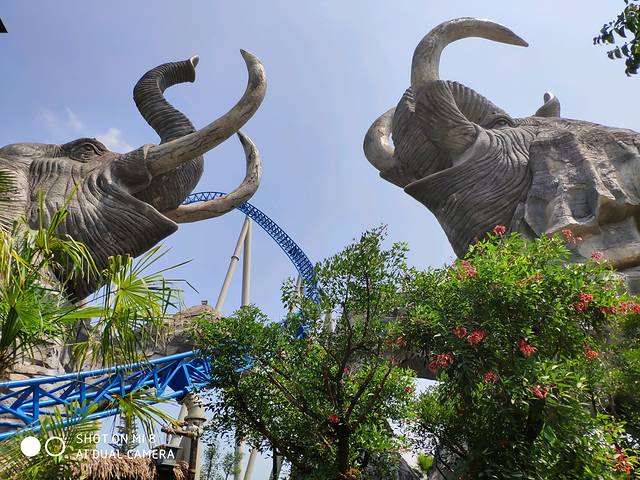 万象过山车,两只巨象抬脚巨吼,着实很有云南特色啦。滚妞和笑笑是胆特别肥的女孩子,反反复复的玩,我们三妈的小心脏也跟着扑通扑通