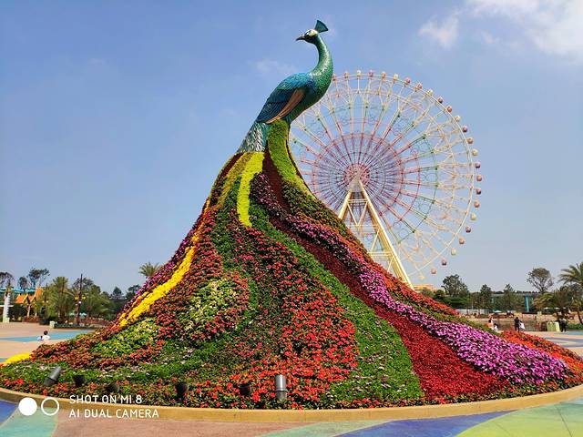 滇池之眼,配色和造型像极了一只正在展翅的孔雀。当蓝天配上摩天轮,仿佛置身于童话中。