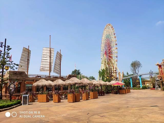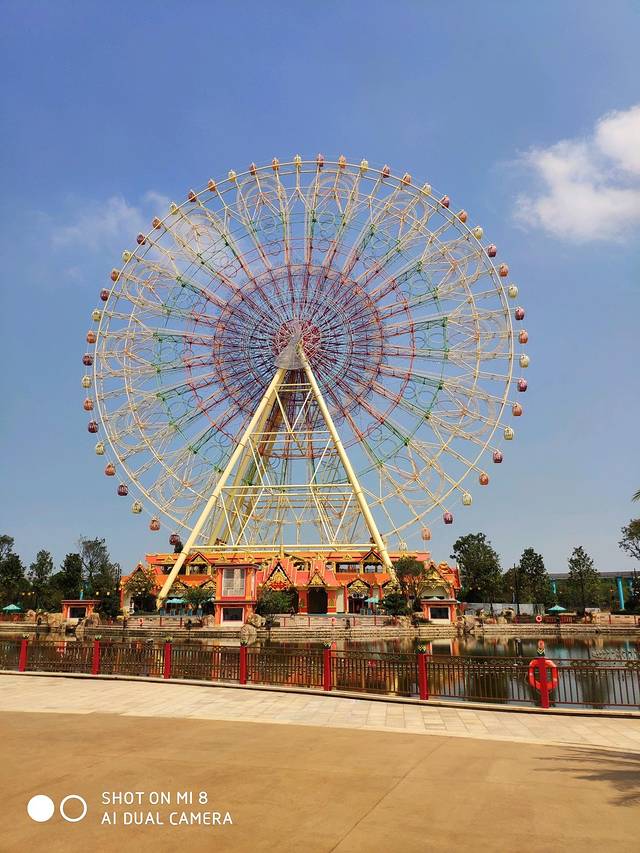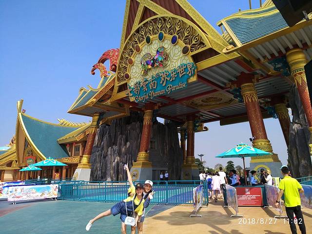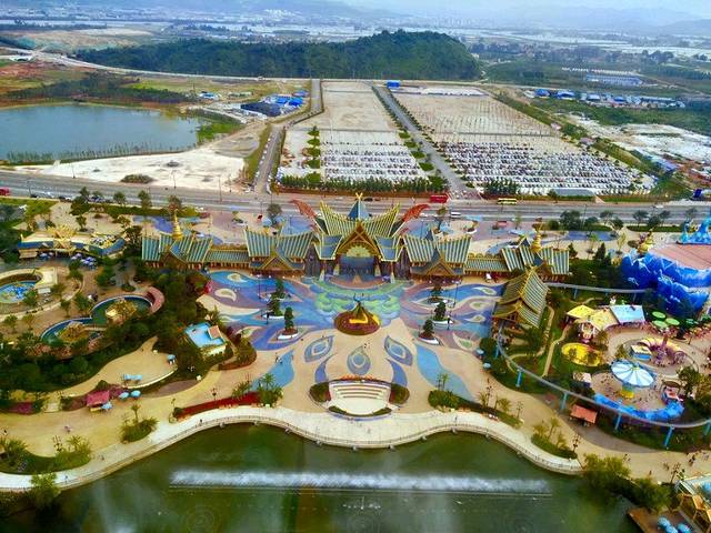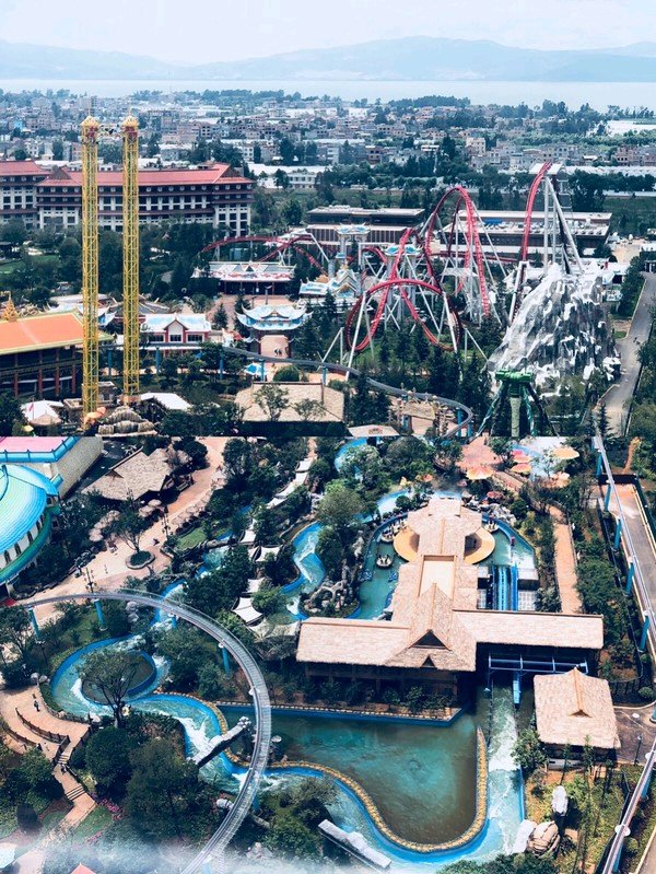 七彩云南欢乐世界,门票成人318元,学生票198元,对咱自家老乡是没有什么优惠的。早上10点开园,到晚上9点闭园。初来有点小长隆的感觉,背靠滇池,风景怡人。