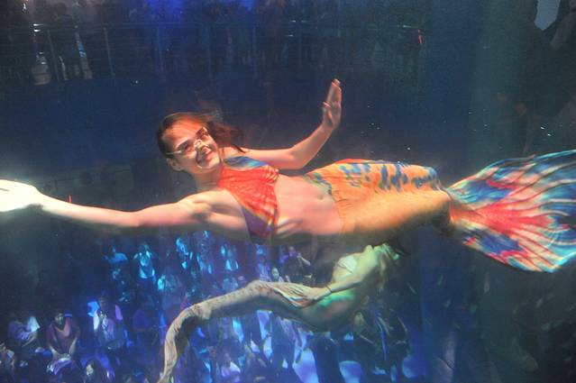 然后到了二楼还看到了美丽的人鱼表演 我哦们几个疯狂拍照啊哈哈哈 太美了 搞得我都想学学游泳了