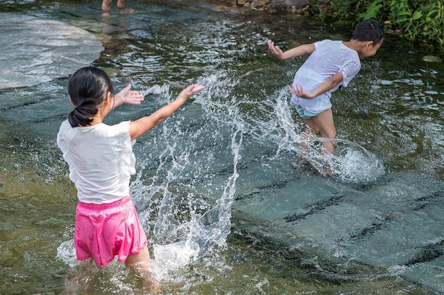游客或是如同回到儿时一般在泉池里玩水,或是躺在树荫下,闻一闻花草的清香,或坐在田垄上,享受着山风吹拂的快意。在冷泉的清凉下消暑,享受缤纷六月的美好时光。高兴之余,一些中老年游客还在养殖冷泉鱼的农家乐里摆下钓竿垂钓,以表达闲适的心情。