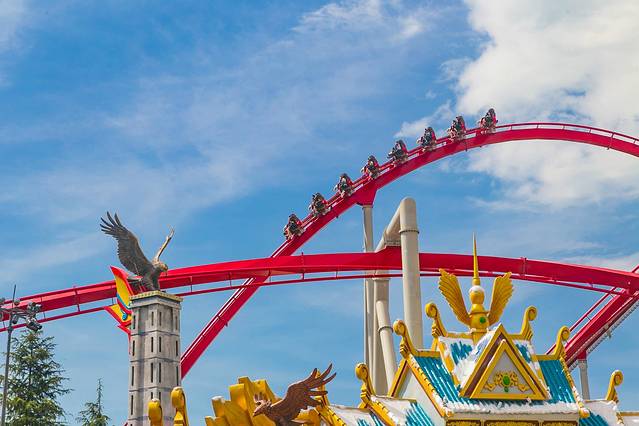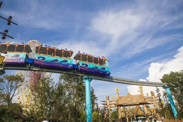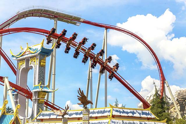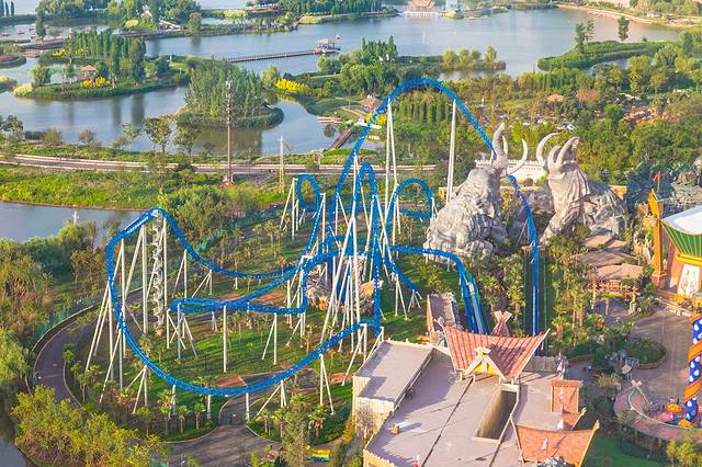 最后的一块区域叫做“ 霜月寒洲”听起来很有诗意对不对?这里有一座“鹰山”,据说原型取自著名的玉龙雪山,带着一股浓浓的浪漫气息。而鹰山之上的“雪鹰宽翼过山车”,则有一种惊险浪漫的感觉——45米的高度,让你体验到在雪山之巅纵身一跃的那种征服世界的快感。为这片乐园中最后一个区域染上了雄壮的色彩。