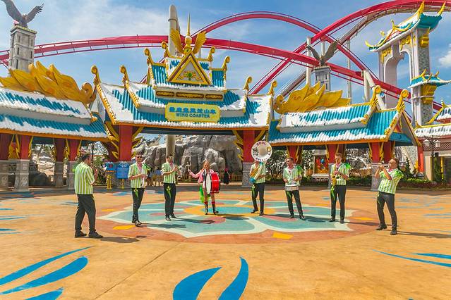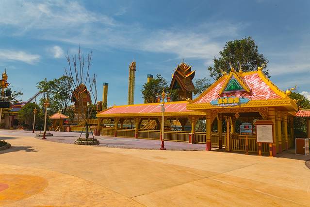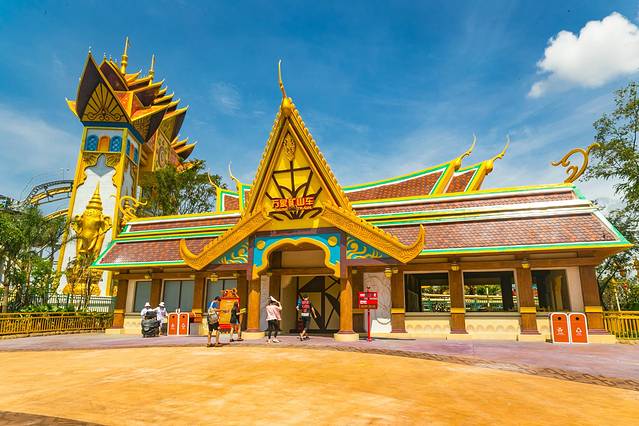 出了“ 洪荒秘境”,就到了“ 万象部落”。原本古滇文化就带着一种浓浓的异域风情,万象部落则是异域风情里的异域风情,超级有趣。当然,有趣之中,也伴随着刺激,这里的“万象矿山车”也是一个让人心跳加速的项目。不过相对于“象戏游龙过山车”而言,“万象矿山车”远没有那么惊险,更多的是一种趣味,如果你不敢体验“象戏游龙”,那么坐坐“万象矿山车”也是挺不错的。