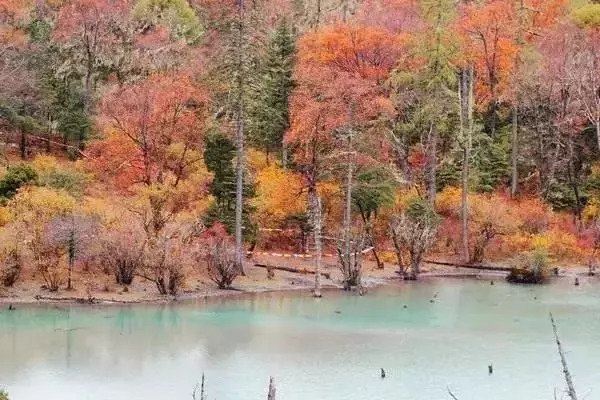 秋天的巴王海,一池秋水温婉如玉,池畔林木红绿黄相间,更是美得让人以为误入了原始静谧的伊甸园。