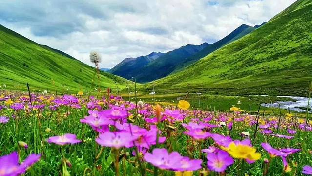 毛垭大草原位于理塘县和巴塘县之间,318国道横跨在草原上。这是一个在任何一个季节来,都有美景看的地方。