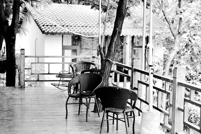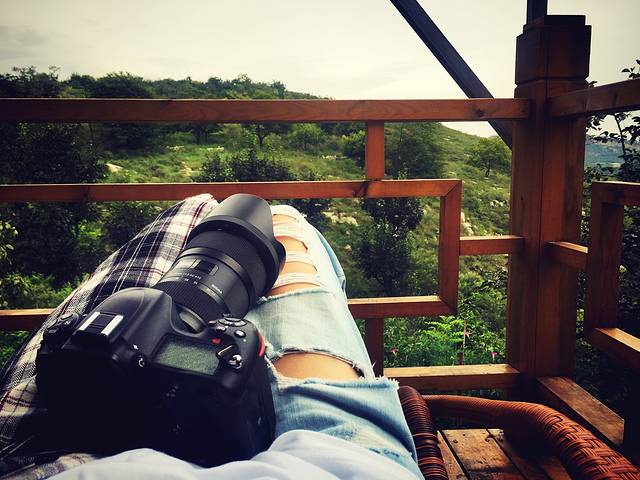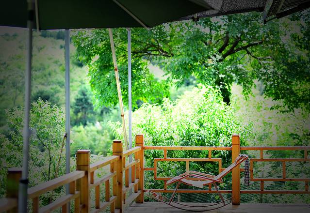 第二天清晨 细雨蒙蒙 我最早一个醒来 拿起相机 到处走走 趁着宁静 拍些照片给你们看 拍完后 三个人还没醒 我坐在露台的摇椅上 面朝大山 追剧