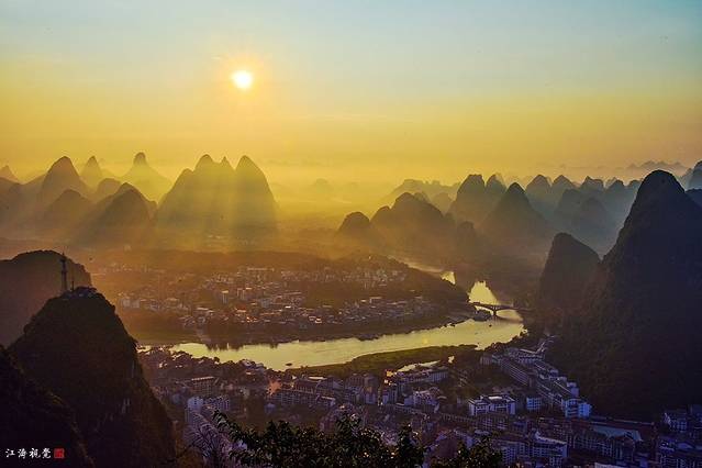 图片是在阳朔电视塔观赏日出 ,日出很美~ ,
